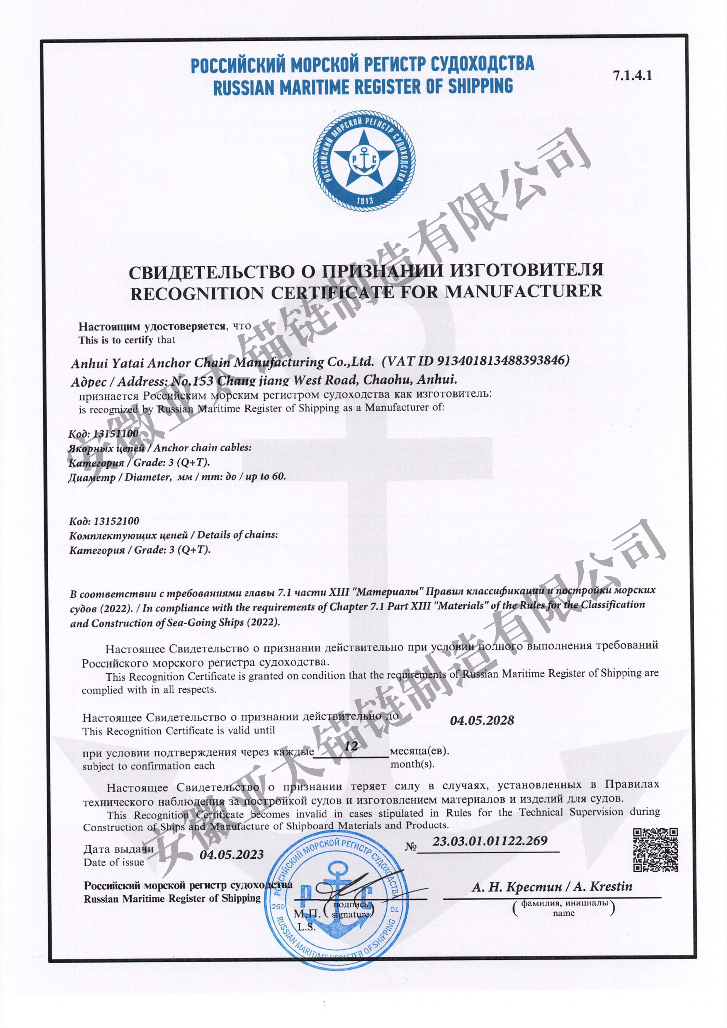 安徽亞太錨鏈制造有限公司是國家高新技術企業,也是國家GB/T 549-2017《電焊錨鏈》標準的起草和制定單位之一。公司旗下設有錨鏈分廠、浮標分廠、舾裝件分廠等多個分廠。公司專業從事φ12.5mm-φ107mm二、三級船用錨鏈、浮標錨鏈、錨鏈附件,錨、船舶曬裝產品、航標、系船浮、船型標、多種規格海洋監測浮標及航標燈等產品的生產、安裝和服務。目前公司的產品銷往全國各地船廠、碼頭、航標處、航道局、海洋局,并已走上國際市場,如東南亞、中東、歐美等國家。